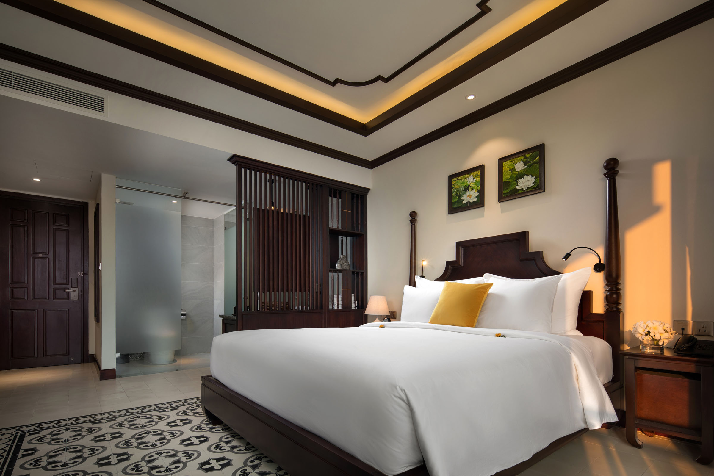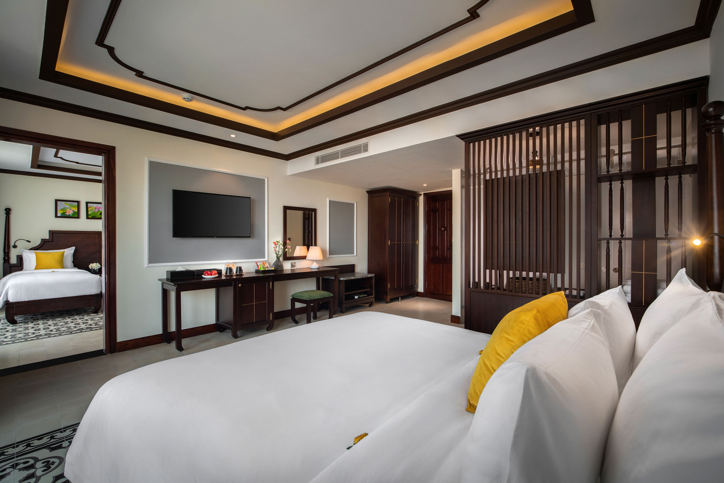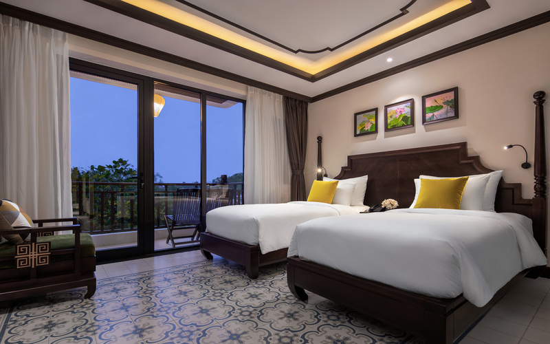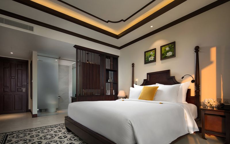 Phòng Cham Villa Suite Garden View được thiết kế với ban công rộng, tầm nhìn từ trên cao giúp bạn có thể cảm nhận được trọn vẹn vẻ đẹp của khách sạn. Đặc biệt, phần ga giường và bao gối được làm từ chất liệu vải sa lanh siêu mềm và mát mang đến cho bạn một giấc ngủ êm đềm và chất lượng.